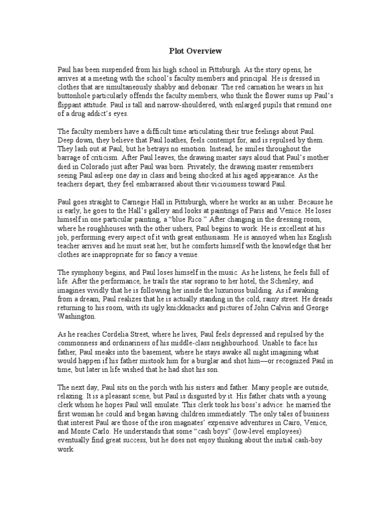 Pauls Case Summary Plus Analysis Narration